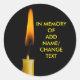 Bougie de cire brûlante contre l'arrière - plan noir. Vous pouvez ajouter votre propre texte pour faire un produit personnalisé à la sympathie de l'express pour toute personne, lieu ou événement. Autocollant rond en mémoire de... Ajoutez votre texte ou modifiez le texte.