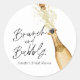 Brunch et bubbly mariage shower autocollant rond. Apportez une touche festive à votre journée. Personnalisez-les avec votre nom et événement. Conçu avec une belle bouteille de Champagne dorée aquarelle. Articles assortis dans notre conception de la fête Cava.
