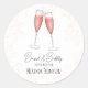 Cette conception présente une simplicité aquarelle rose pour une fête de mariage, une célébration moderne de fête au champagne, un brunch et un toast au champagne pétillant, un texte de police de calligraphie fantaisiste, un verre à vin élégant et tendance, des bulles roses minimales et scintillantes, des étiquettes classiques et mignonnes, des autocollants personnalisés et créatifs, des fournitures de fête de mariage rose saumon, un cadeau fantaisiste pour une fête de mariage