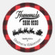 Sticker Rond Buffalo Plaid Père Noël fait maison avec un cadeau