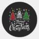 Sticker Rond Buffle de Noël Plaid Rouge Blanc Vert Noël