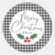 Sticker Rond Buffle noir blanc Plaid Joyeux Noël