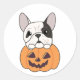 Sticker Rond Bulldog En Chiens Citrouilles Cutes Happy Hallowee
