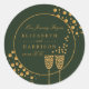 Sticker Rond Bulles de Champagne d'or, Mariage vert et or