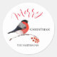 Sticker Rond Bullfinch and red Rowan berries, Merry Christmas!
