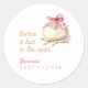 Sticker Rond Bun In The Oven Pink Gingham Bow Baby Shower