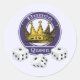 Couronne d'or Bunco Queen avec trois dés Bunco sur un emblème Bunco. Design amusant et festif pour son Altesse royale la reine Bunco. Grand prix ou cadeau.