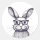 Un dessin d'un lapin portant des lunettes, un portrait de personnage