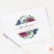Cet autocollant mariage rustique présente un bouquet de fleurs d'aquarelle bordeaux, bleu marine et blanc. Les mots "merci" apparaissent dans la calligraphie élégante de l'écriture bordeaux avec des swashes au début et à la fin. Ajoutez les noms du couple et la date du mariage ci-dessous.