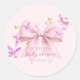 Sticker Rond Butterfly Pink Bow Baby Shower
