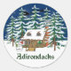 Cabine en rondins mignon entouré de grands pins et de neige de montagne Adirondack.