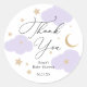 Étiquette de faveur sur le thème de la lune avec des nuages violets aquarelle, des étoiles dorées et une lune. Parfait pour une baby shower. Correspond à la collection Over the Gold Moon disponible sur la boutique Adore Paper Co. sur Zazzle. Personnalisez avec le nom, la date de l'événement ou le texte personnalisé.