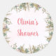 Sticker Rond Cadeau de Baby Shower Rose Bohème Pampas & Fleurs