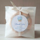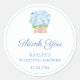 Autocollants de remerciement pour tout événement (illustrés ici pour une fête de mariage, mais tous les champs de texte sont personnalisables). Le design présente un panier en osier aquarellé rempli de nuages d'hydrangeas bleus (peints à la main à l'origine par moi, avant d'être numérisés).