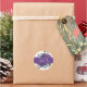 De jolis autocollants de cadeau de fiançailles réalisés en blanc, avec des lilas violets et un texte blanc personnalisé, sur un bandeau violet, traversant le milieu de l'autocollant. Personnalisez le texte pour répondre aux besoins de votre événement.