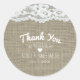 Sticker Rond Cadeau de mariage simple rustique élégant Burlap &