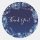 Sticker Rond Cadeau flocons de neige bleus et blancs Winter Won