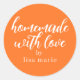 Autocollant fait maison personnalisé rustique et moderne avec amour avec une écriture manuscrite stylisée calligraphiée sur un fond orange vif. Parfait pour tous vos cadeaux faits maison ! Ajoutez simplement votre nom à l'étiquette. Conçu exclusivement pour vous par Happy Dolphin Studio !