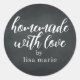 Autocollant personnalisé fait maison rustique et moderne avec amour avec une écriture manuscrite stylisée calligraphiée sur fond de tableau noir. Parfait pour tous vos cadeaux faits maison ! Ajoutez simplement votre nom à l'étiquette. Conçu exclusivement pour vous par Happy Dolphin Studio !