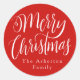 Un traitement de type Joyeux Noël manuscrit unique ressort sur fond rouge sur cet autocollant rond. La couleur de fond est rouge, mais elle peut être modifiée en cliquant sur "personnaliser". L'étiquette comporte également un espace pour votre texte personnalisé. Parfait pour les étiquettes-cadeaux ou les étiquettes, les biscuits de Noël ou toute autre façon de répandre la joie des fêtes.