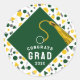 Étiquettes créatives de félicitations de remise de diplôme et autocollants de cadeaux, avec une casquette verte et un gland doré sur fond de confettis. Modifiez le texte pour ajouter le nom du diplômé et l'année de la promotion.