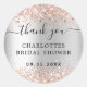 Un fond semblable à de l'argent décoré de paillettes fausses rose or, scintille. Personnalisez et ajoutez un nom et une date. Texte : Merci.