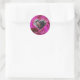 Sticker Rond Cadre de cœur photo personnalisée soie fuchsia et