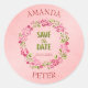 Le cadre moderne et mignon des fleurs roses et des feuilles verts sur arrière - plan rose