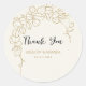 Doté de feuilles et de fleurs en or peints à la main, cet autocollant mariage a un design fantasque avec typographie noir et or personnalisable sur un arrière - plan en papier crème.
