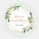 Un cadre géométrique à aspect de feuille d'or avec du feuillage et des coins de bouquet de fleurs aquarelles blanches est placé sur un fond aqua clair sur cet autocollant. Crée un beau remerciement moderne pour toute célébration en plein air, y compris un anniversaire, une fête de fiançailles, un enterrement de vie de jeune fille ou un événement qui présente du feuillage avec des touches d'or. Disponible avec des produits assortis.