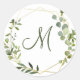 Cadre géométrique eucalyptus moderne MONOGRAMME Autocollant rond classique