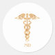 Sticker Rond Caducée de médecin doré