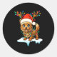 Sticker Rond Cairn Terrier Christmas Santa Hat Reindeer Lights