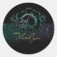 pegatina en forma redonda que pega contigo spécial para ocasiones y Celaciones hecha con textura negra y rosas de color turquesa con purpurina multicolor Puedes usarla para un envío special.