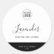 Ce étiquette produit rond avec script de calligraphie a des couleurs entièrement modifiables. Vous pouvez modifier la couleur de l'arrière - plan et la couleur du rectangle inférieur en cliquant sur personnaliser. Personnalisez-le en remplaçant le texte de l'espace réservé et l'image de l'espace réservé par votre propre logo. Pour plus d'options comme changer la police, sa taille et l'espacement entre les lettres cliquez sur le bouton "Personnaliser". *Veuillez noter que le filigrane Zazzle qui apparaît dans l'aperçu du zoom n'apparaîtra PAS sur le produit imprimé final. © Bois de rose et agrumes