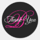 Sticker Rond Calligraphie fantaisie Monogramme rose vif Merci
