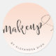 Elégant design minimaliste maquillage autocollant qui comprend votre nom et le texte maquillage dans une écriture manuscrite moderne, dégradé rose arrière - plan.