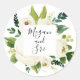 Sticker Rond Calligraphie Moderne de Fleurs Blanches de Verdure