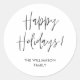 Autocollant Rond Classique de Calligraphie Moderne Noir et Blanc Joyeuses Fêtes Famille pour emballage cadeau ou pour sceller les enveloppes des fêtes.