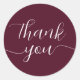 Sticker Rond Calligraphie rouge de Bourgogne Élégant Merci