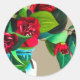 Sticker Rond Camellias rouge avec fleur d'aquarelle de feuillag