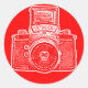Un autocollant avec un contraste élevé, une image filtrée et vectorisée haute passe d'un appareil photo vintage est-allemand des années 1950. Création d'une forte impression d'écran rétro toothy. ou en laiton gothique médiéval frottant comme effet.