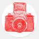 Un autocollant avec un contraste élevé, une image filtrée et vectorisée haute passe d'un appareil photo vintage est-allemand des années 1950. Création d'une forte impression d'écran rétro toothy. ou en laiton gothique médiéval frottant comme effet.
