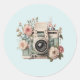 Sticker Rond Camera with Flowers Retro Pastel Image