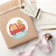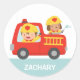 Sticker Rond Camion feu rouge avec pompier garçon et chiot