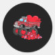Sticker Rond Camion Monster de Saint Valentin avec Coeurs Plaid