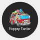 Sticker Rond Camion Pompier Jour de Pâques oeufs de lapin Joyeu
