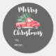 Sticker Rond Camion rouge et arbre | Nom cadeau de Noël gris