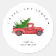 Sticker Rond Camion Russe Rouge Aquarelle Avec Arbre De Noël