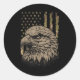 Sticker Rond Camo Patriotique Bald Eagle Grunge Drapeau América